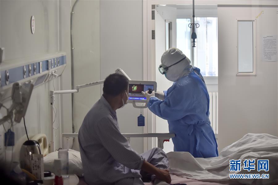 6月16日,在北京地壇醫(yī)院隔離病房內(nèi),護士幫助患者調(diào)整電視。新華社記者 彭子洋 攝