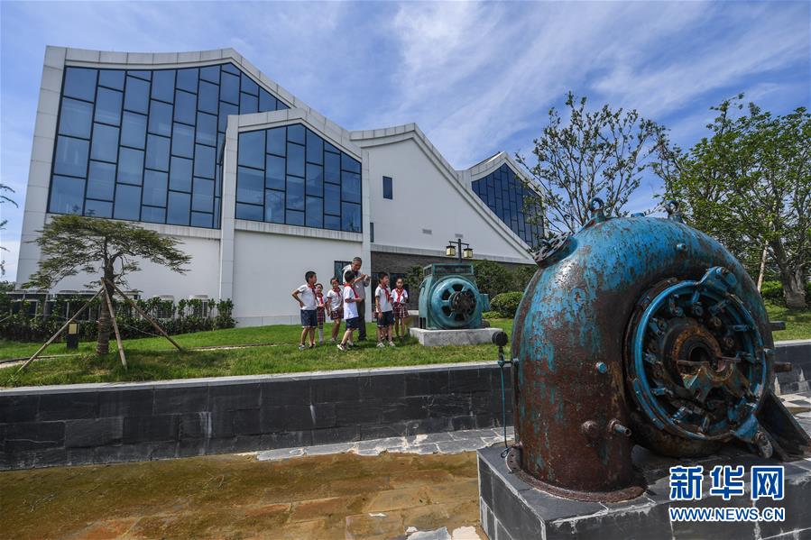 6月17日,洛舍鎮(zhèn)中心學(xué)校的學(xué)生們?cè)诼?tīng)水情館的水利專家講解軸流泵等水利設(shè)備。新華社記者 徐昱 攝