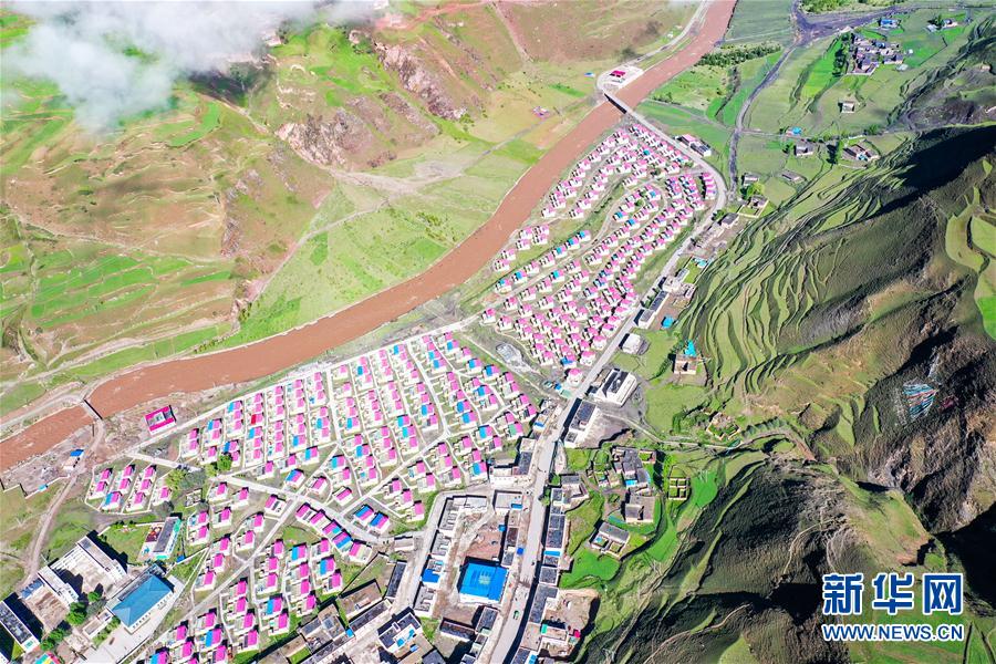 位于丁青縣嘎曲河畔的尺牘鎮(zhèn)易地扶貧搬遷點(6月14日攝,無人機照片)。新華社記者 田金文 攝