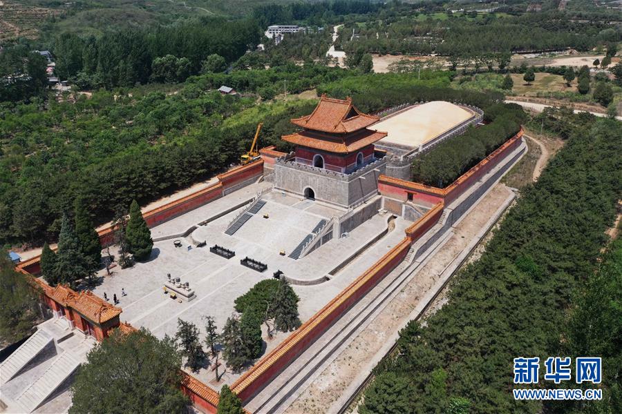 這是清西陵崇陵明樓和寶頂(6月18日攝,無人機照片)。新華社記者朱旭東攝