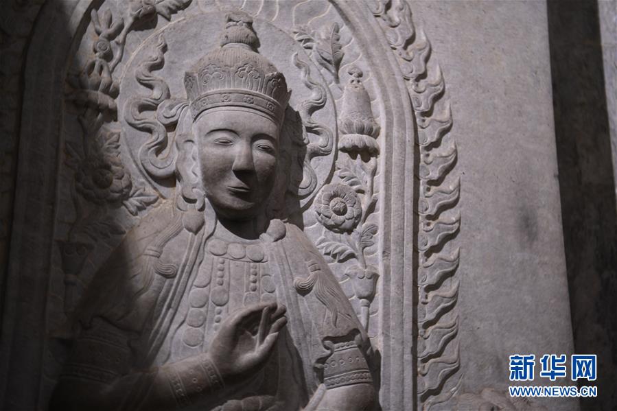 這是清西陵崇陵地宮石門上的雕塑(6月18日攝)。新華社記者朱旭東攝