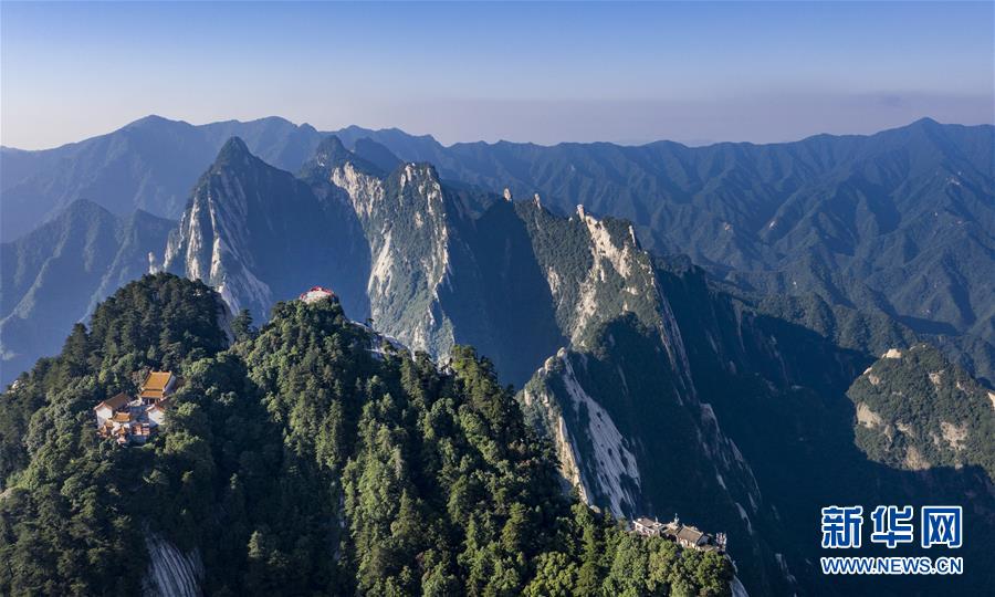 6月18日拍攝的華山南峰(無人機照片)。當日,西岳華山經(jīng)歷連續(xù)三天暴雨后,迎來燦爛的陽光。新華社記者 陶明 攝