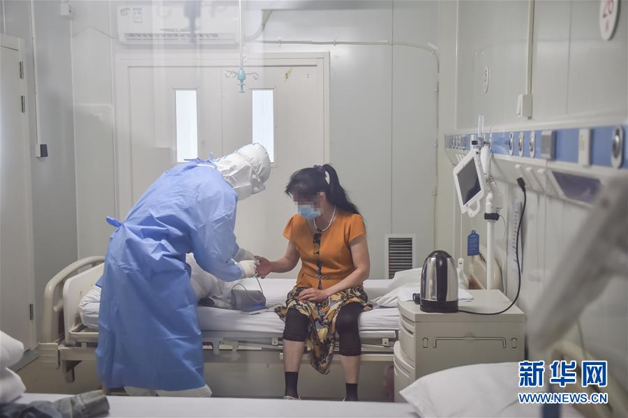 6月19日,在北京地壇醫(yī)院隔離病房內,護士給新入住的病人做檢查。新華社記者彭子洋攝