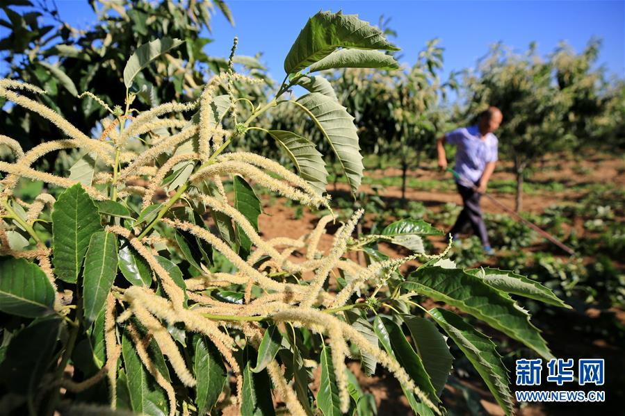 6月21日,河北省遷西縣東荒峪鎮(zhèn)大店子村農(nóng)民在板栗樹旁的種植田內(nèi)勞作。