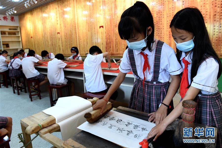 6月22日,連城縣四堡中心小學(xué)學(xué)生用雕版印刷“禁毒三字經(jīng)”,開展禁毒宣傳活動(dòng)。在“6·26”國(guó)際禁毒日來臨之際,福建省連城縣城鄉(xiāng)小學(xué)學(xué)生將提線木偶、雕版印刷及傳統(tǒng)花燈等當(dāng)?shù)乜图曳沁z文化元素,融入校園禁毒宣傳活動(dòng)中,提高防毒、拒毒和禁毒意識(shí)。新華社記者彭張青攝