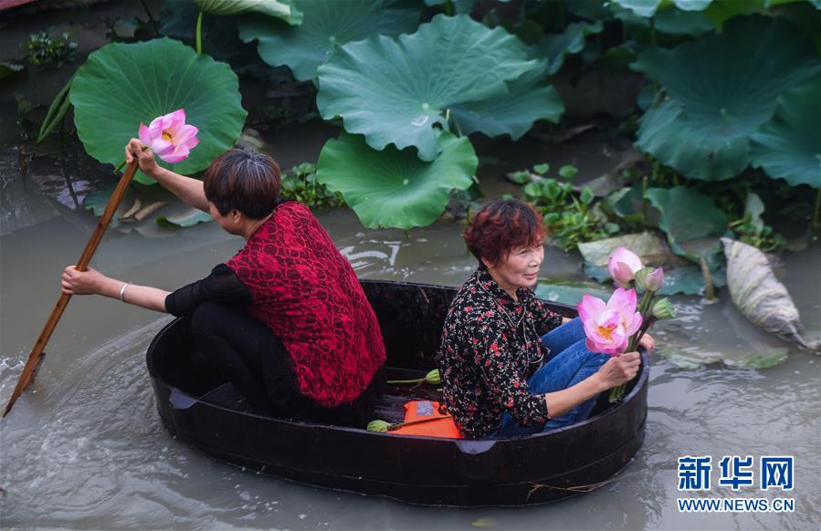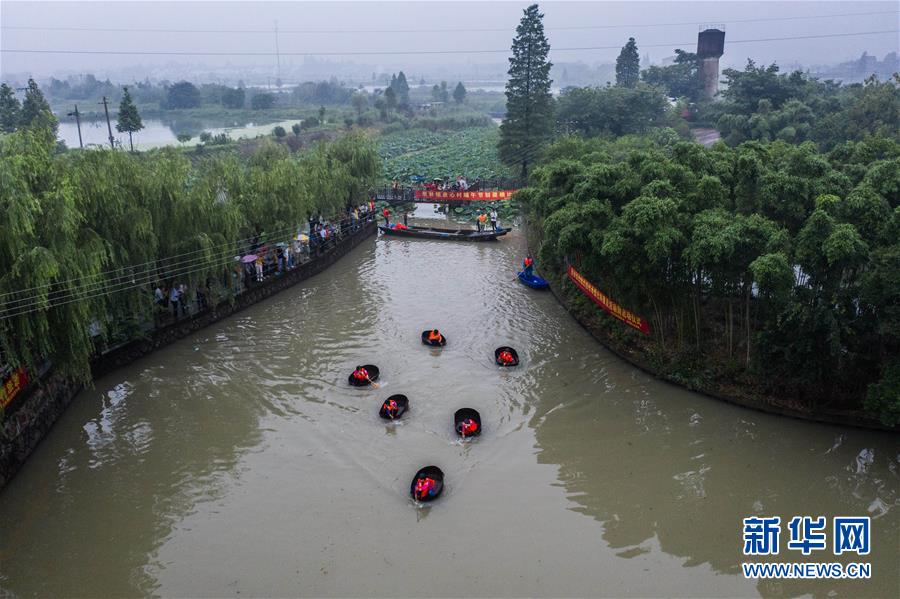 6月23日,東林鎮(zhèn)村民劃著菱桶采收荷花和蓮蓬。當(dāng)日,浙江省湖州市東林鎮(zhèn)在泉心村荷花池舉辦“慶端午劃菱桶”趣味活動。村民們劃著菱桶在水面上你追我趕,同時采收荷花和蓮蓬,呈現(xiàn)出水鄉(xiāng)特有的端午節(jié)日氛圍。在河網(wǎng)密布的東林鎮(zhèn),菱桶是水鄉(xiāng)家家戶戶都有的一種傳統(tǒng)水上勞動工具,村民在捕魚、采菱、采荷時都要用到。新華社記者徐昱攝