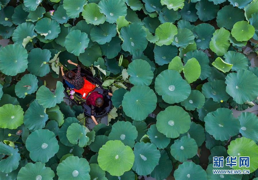6月23日,東林鎮(zhèn)村民劃著菱桶采收荷花和蓮蓬(無(wú)人機(jī)照片)。當(dāng)日,浙江省湖州市東林鎮(zhèn)在泉心村荷花池舉辦“慶端午劃菱桶”趣味活動(dòng)。村民們劃著菱桶在水面上你追我趕,同時(shí)采收荷花和蓮蓬,呈現(xiàn)出水鄉(xiāng)特有的端午節(jié)日氛圍。在河網(wǎng)密布的東林鎮(zhèn),菱桶是水鄉(xiāng)家家戶戶都有的一種傳統(tǒng)水上勞動(dòng)工具,村民在捕魚、采菱、采荷時(shí)都要用到。新華社記者徐昱攝