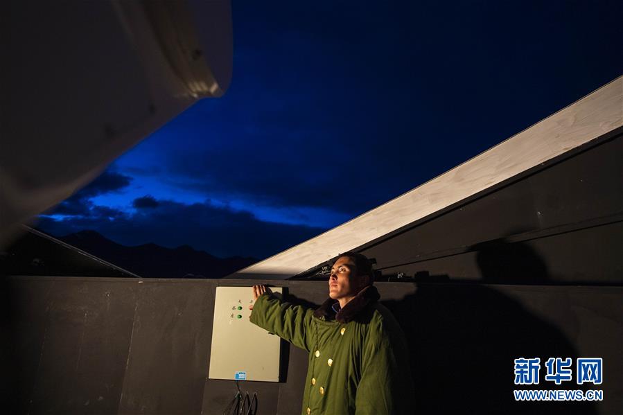 在中國科學(xué)院新疆天文臺(tái)慕士塔格觀測站,助理觀測員阿克力·圖拉提開啟望遠(yuǎn)鏡圓頂,準(zhǔn)備開始當(dāng)晚的觀測(6月15日攝)。新華社記者胡虎虎攝