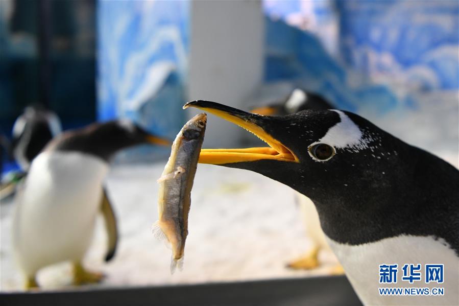 6月24日,哈爾濱極地館的企鵝在品嘗“魚粽”里的小魚。當日,哈爾濱極地館的工作人員特地準備了“魚粽”“肉粽”,讓生活在這里的極地動物也品嘗一下端午美食。新華社記者王建威攝