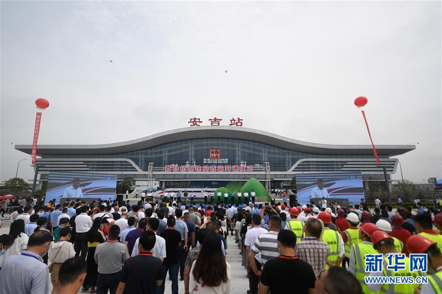 這是6月28日拍攝的商合杭高鐵浙江安吉站開通儀式現場。新華社記者黃宗治攝