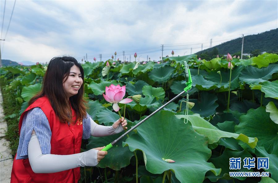 6月29日,90后年輕黨員諸葛海洋在新登鎮(zhèn)上山村的百畝荷塘進(jìn)行網(wǎng)絡(luò)推介,助力鄉(xiāng)村旅游。近日,浙江省杭州市富陽區(qū)新登鎮(zhèn)來自不同領(lǐng)域、有著不同身份的基層黨員們紛紛化身網(wǎng)絡(luò)“主播”,借助抖音、朋友圈等網(wǎng)絡(luò)載體,傾情推介家鄉(xiāng)的山鄉(xiāng)風(fēng)貌、山鄉(xiāng)味道、山鄉(xiāng)民俗、山鄉(xiāng)風(fēng)情。新華社記者徐昱攝