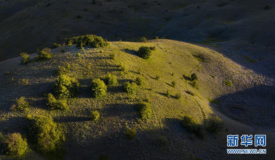 6月30日,朝霞照耀下的神田草甸(無人機照片)。位于陜西省安康市嵐皋縣與重慶市城口縣交界處大巴山神田主脊北坡的神田草甸,面積超過1.1萬畝。夏日的朝霞中,起伏的草甸仿佛一塊寬大無邊的綠色地毯,鑲嵌在大巴山上,如詩如畫。新華社記者陶明攝