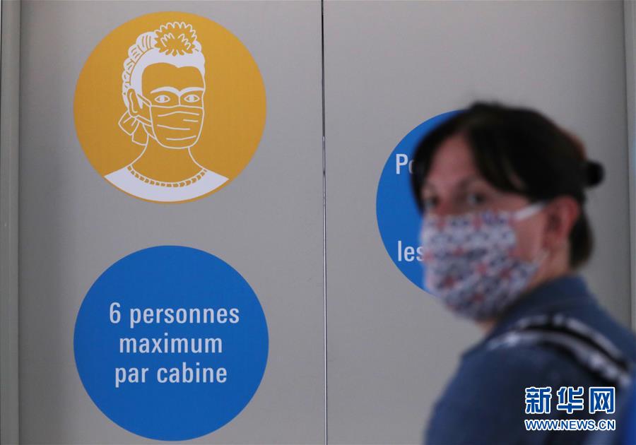 7月1日,法國巴黎蓬皮杜藝術(shù)中心的電梯上貼著“請佩戴口罩”和“最多6人乘梯”的標識。因新冠疫情關(guān)閉的法國巴黎蓬皮杜藝術(shù)中心于7月1日重新開門迎客。目前,中心只開放6層的臨時展區(qū)和4、5層的現(xiàn)代藝術(shù)常設(shè)展區(qū)。參觀者需提前網(wǎng)上預(yù)約參觀時段,11歲以上參觀者須佩戴口罩,參觀過程中保持安全距離。新華社記者高靜攝