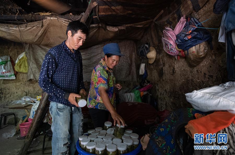 且沙次干、阿達(dá)么日雜夫婦倆在老房子里收拾制作的泡菜(6月27日攝)。當(dāng)天他們把老房子里的糧食、家什等收拾一番,準(zhǔn)備搬進(jìn)村集中安置點(diǎn)的新居。新華社記者 江宏景 攝