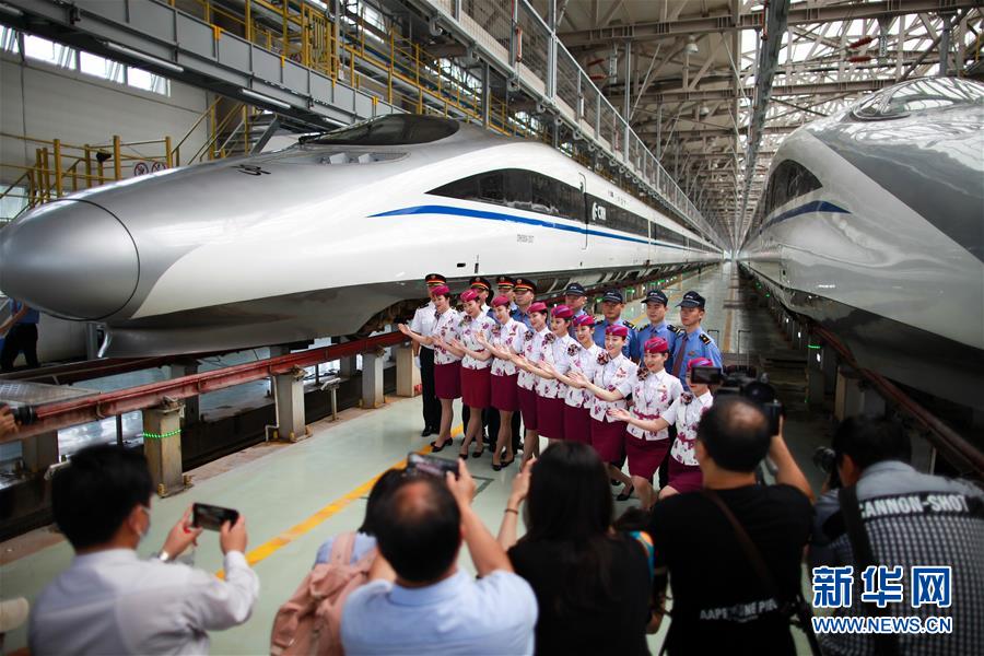 7月3日,新聞媒體在貴陽(yáng)采訪拍攝擔(dān)任首發(fā)列車值乘工作的班組人員。 新華社記者 劉續(xù) 攝
