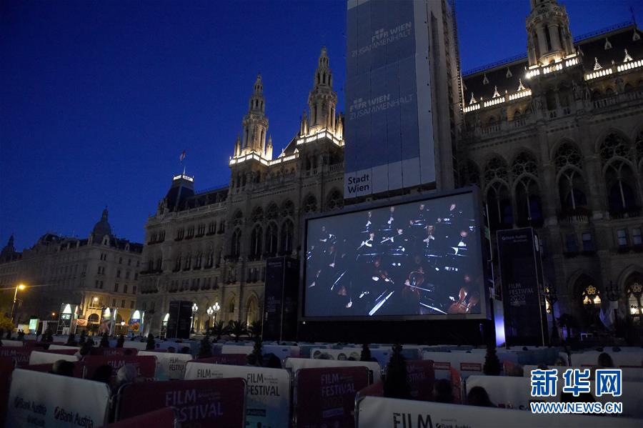 7月4日,觀眾們?cè)趭W地利首都維也納市政廳廣場(chǎng)內(nèi)場(chǎng)一個(gè)個(gè)獨(dú)立小區(qū)域內(nèi)觀看維也納電影節(jié)開(kāi)幕電影——貝多芬的歌劇《菲岱利奧》。新華社記者郭晨攝