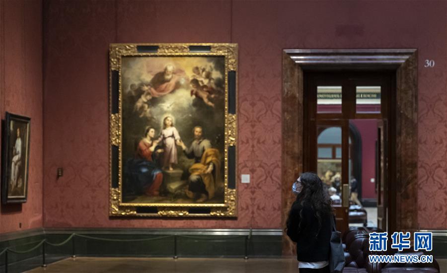 7月4日,參觀者佩戴口罩在英國國家美術館的媒體開放日上參觀。受新冠疫情影響而關閉的英國國家美術館將于7月8日重新對公眾開放,成為倫敦首批開門迎客的博物館、美術館。參觀者需提前網(wǎng)上預約參觀時段,全程佩戴口罩且保持安全距離。新華社記者韓巖攝