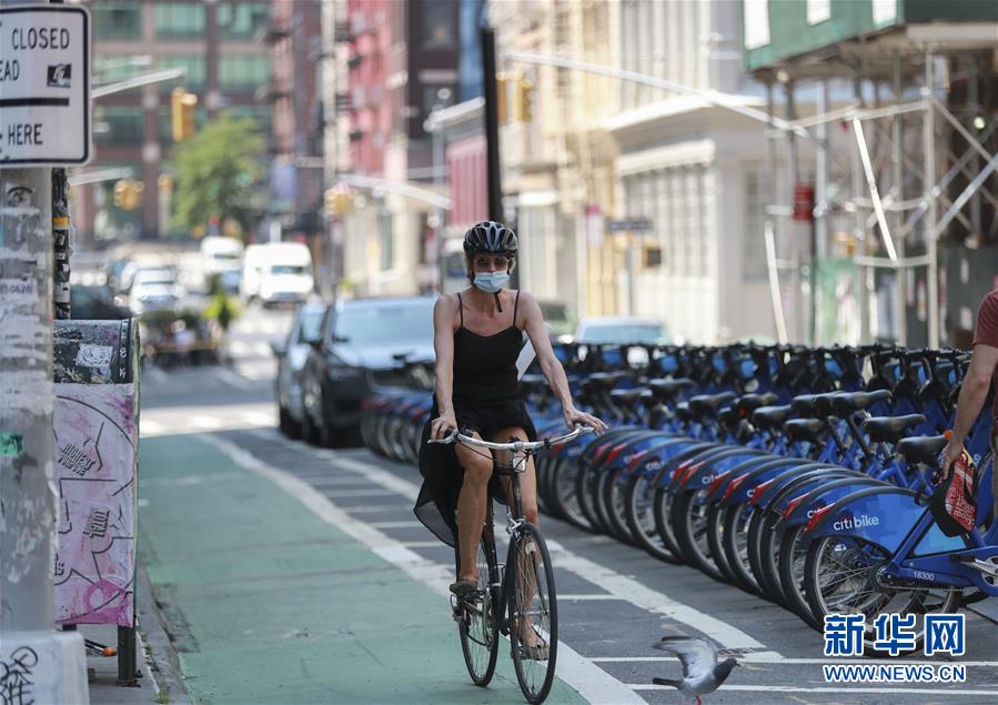 7月6日,一名女子在美國紐約騎行。新華社記者王迎攝