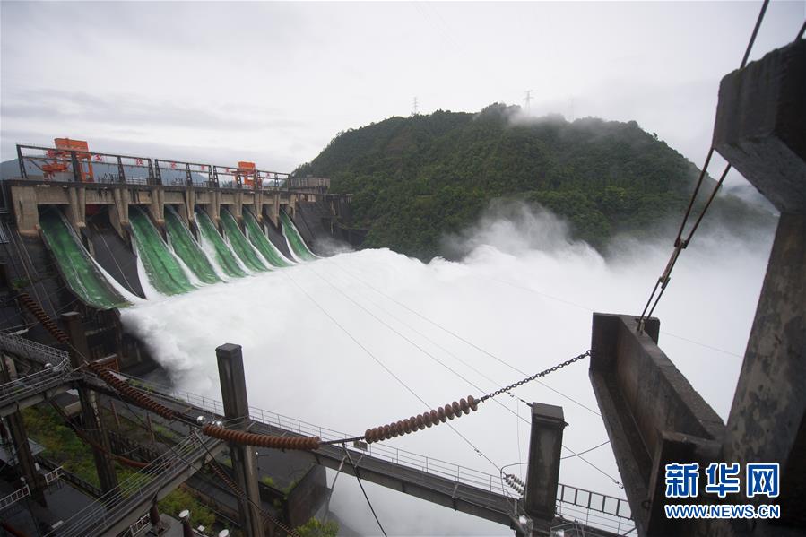 7月7日下午開啟7孔泄洪的新安江水庫。受持續(xù)降水影響,浙江新安江水庫水位持續(xù)快速上升。繼當日10時開啟3孔、12時開啟5孔泄洪后,新安江水庫于16時增加到7孔泄洪。新安江水庫是華東地區(qū)最大的水庫,在錢塘江流域的防洪度汛中起到關鍵作用。新華社記者翁忻旸攝