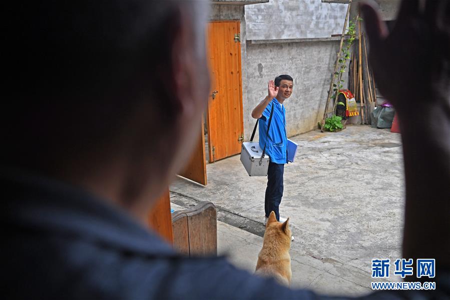 7月8日,在長垌村出診結(jié)束后,村民與陶雷揮手告別。新華社記者周華攝