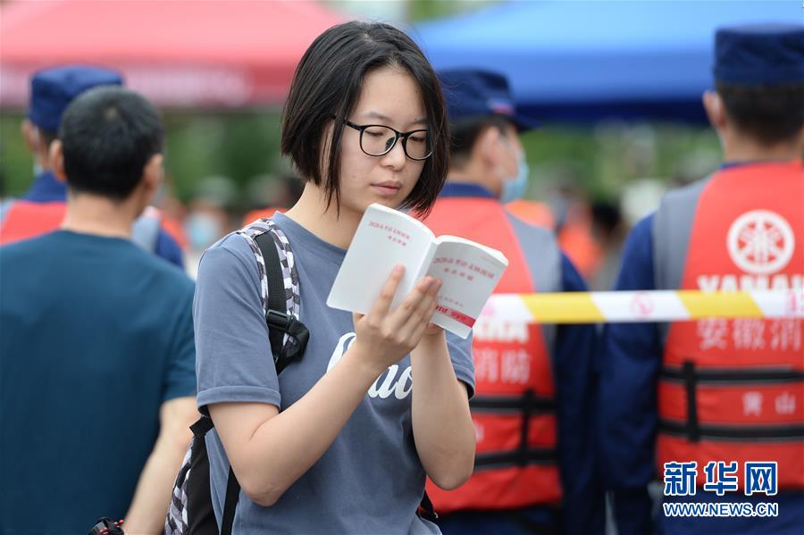 7月9日,一名考生在歙縣第二中學(xué)考點外復(fù)習(xí)。受強降雨影響,2020年高考安徽歙縣考區(qū)7月7日未能如期開考,經(jīng)研究并報教育部批準,歙縣考區(qū)于9日啟用2020年普通高等學(xué)校招生全國統(tǒng)一考試語文、數(shù)學(xué)(文、理)科目副題進行考試。新華社記者黃博涵攝