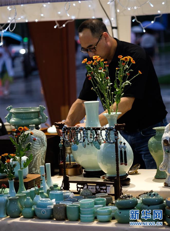 7月10日,工作人員在嘉年華現(xiàn)場(chǎng)特色商品攤位忙碌。新華社記者徐昱攝。