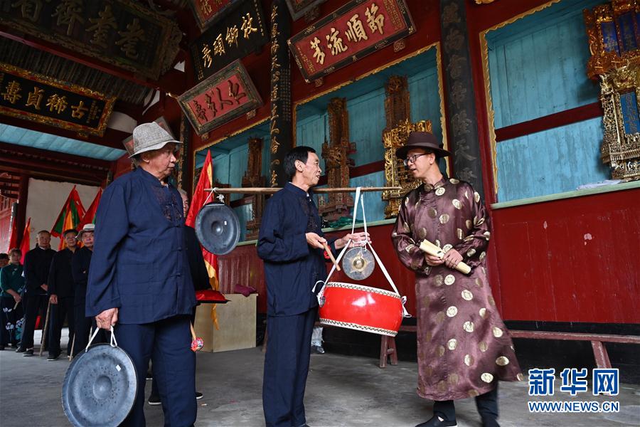 7月4日,浦源村民在村里的鄭氏宗祠集合,準備展示魚祭習(xí)俗。魚祭習(xí)俗是為死去的鯉魚舉行送葬儀式,是浦源村特有的習(xí)俗。新華社記者 姜克紅 攝