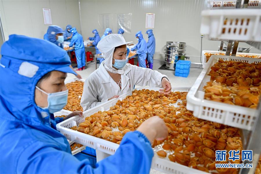 7月14日,福建省連江縣一家鮑魚加工企業(yè),工人在搬運鮑魚產品。新華社記者 姜克紅 攝