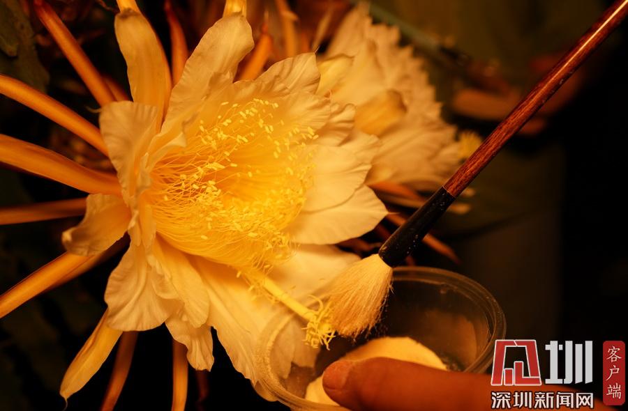廣西融水:火龍果果農夏夜“點花”忙
