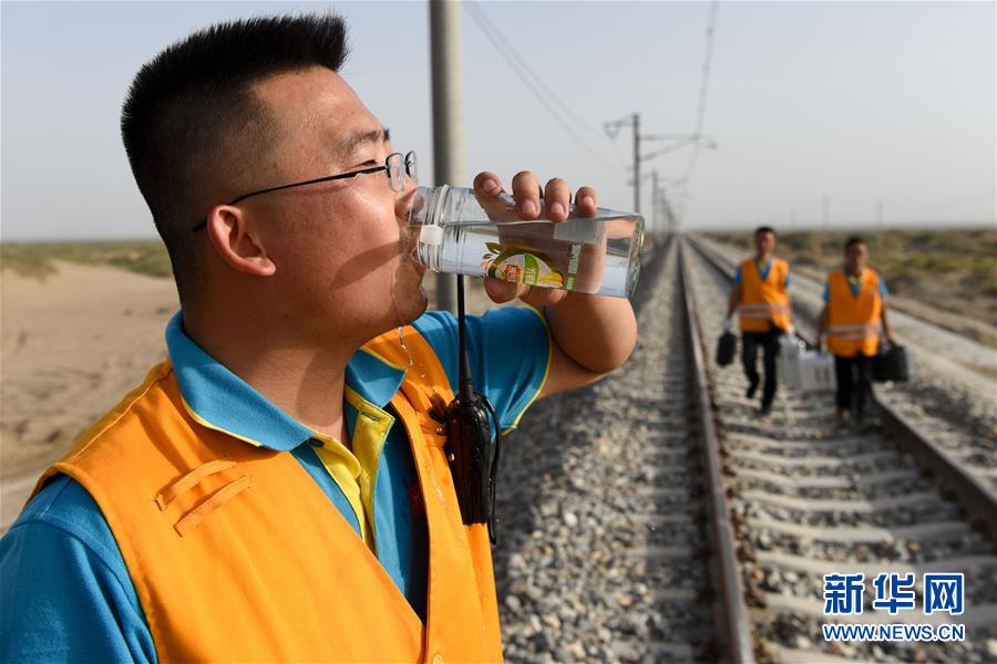 鋼軌打磨機(jī)組的技術(shù)員進(jìn)行鋼軌巡檢(7月14日攝)。新華社記者 丁磊 攝
