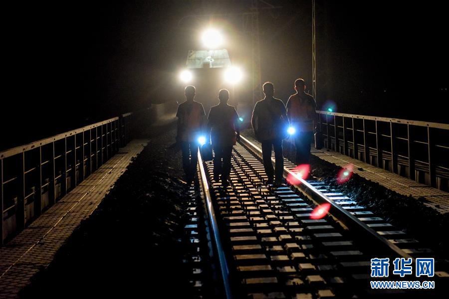 鋼軌打磨機組的技術(shù)員進行鋼軌巡檢(7月14日攝)。新華社記者 丁磊 攝