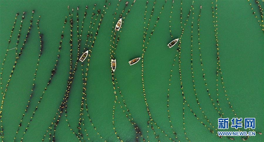 7月15日拍攝的山東省榮成市一處國(guó)家級(jí)海洋牧場(chǎng)(無(wú)人機(jī)照片)。新華社記者王凱攝