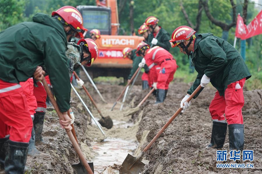 在揚(yáng)中市長(zhǎng)江大堤新壩鎮(zhèn)新寧村段,中國(guó)安能集團(tuán)第二工程局常州分公司防汛前置備勤隊(duì)員在填充反濾料(7月17日攝)。捆蘆葦護(hù)邊坡、機(jī)器人進(jìn)涵洞、“養(yǎng)水盆”防滲漏……在江蘇鎮(zhèn)江,當(dāng)?shù)馗刹咳罕姾蛯I(yè)力量,因地制宜就地取材,老辦法搭配新技術(shù),一批險(xiǎn)情得以消除在萌芽狀態(tài)。新華社記者季春鵬攝