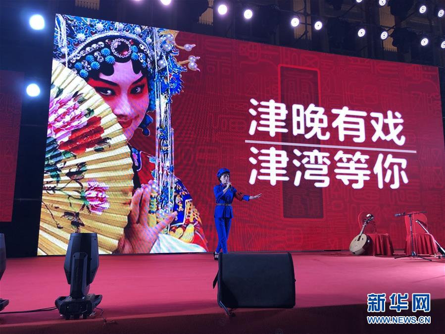 京劇愛好者在天津津灣廣場表演經(jīng)典京劇唱段(7月19日手機拍攝)。新華社記者宋瑞攝