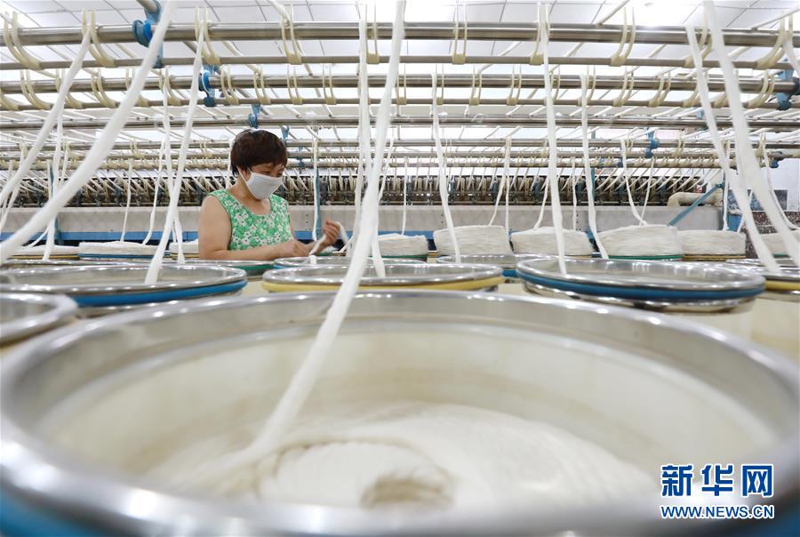7月20日,工人在灤南縣長凝鎮(zhèn)的一家紡織廠生產(chǎn)車間里工作。近年來,河北省灤南縣大力發(fā)展村邊民營企業(yè),引導(dǎo)企業(yè)在鄉(xiāng)鎮(zhèn)村邊建廠,帶動當(dāng)?shù)?萬多名農(nóng)村群眾在村邊就近就業(yè),實(shí)現(xiàn)穩(wěn)步增收。新華社記者楊世堯攝