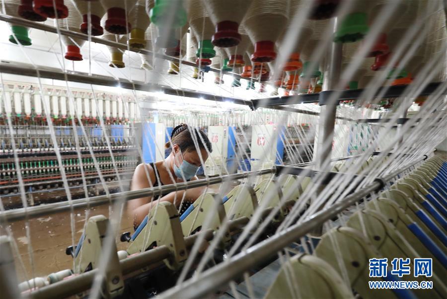7月20日,工人在灤南縣長凝鎮(zhèn)的一家紡織廠生產(chǎn)車間里工作。近年來,河北省灤南縣大力發(fā)展村邊民營企業(yè),引導(dǎo)企業(yè)在鄉(xiāng)鎮(zhèn)村邊建廠,帶動當(dāng)?shù)?萬多名農(nóng)村群眾在村邊就近就業(yè),實現(xiàn)穩(wěn)步增收。新華社記者楊世堯攝