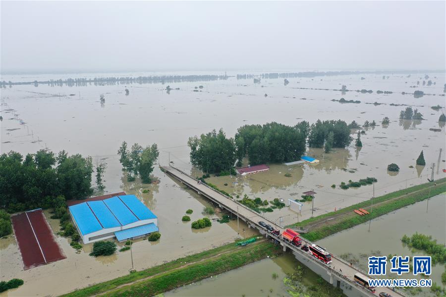 這是7月21日拍攝的被淹的南京市高淳區(qū)陽江鎮(zhèn)勝利圩(畫面左側(cè))(無人機照片)。新華社記者季春鵬攝
