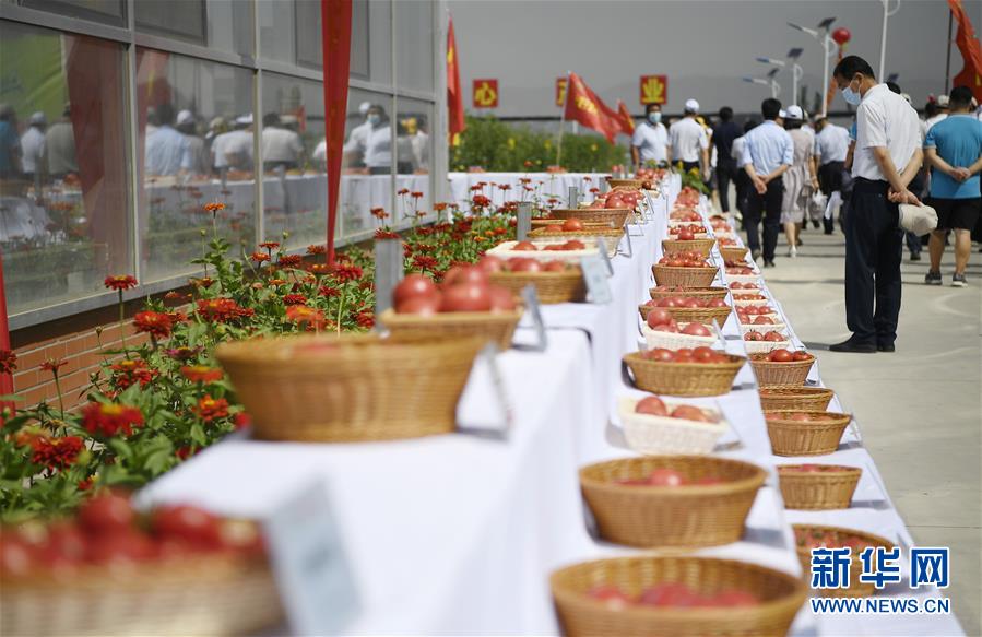 7月27日,參會(huì)者在展覽現(xiàn)場(chǎng)觀看由不同種子培育出的西紅柿產(chǎn)品。新華社記者 王鵬 攝
