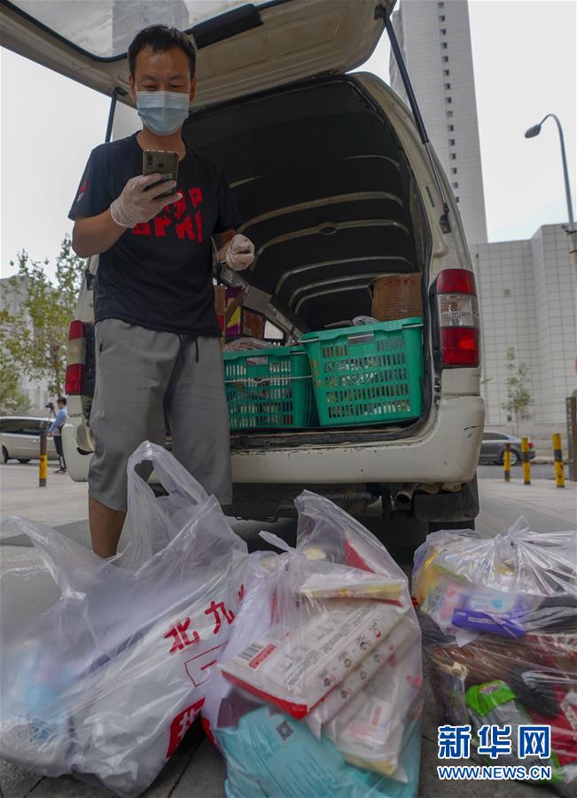 7月30日,在烏魯木齊經(jīng)濟技術(shù)開發(fā)區(qū)(頭屯河區(qū))萬達(dá)華府小區(qū),商販打電話告知住戶訂購的商品已經(jīng)送達(dá)。新華社記者趙戈攝