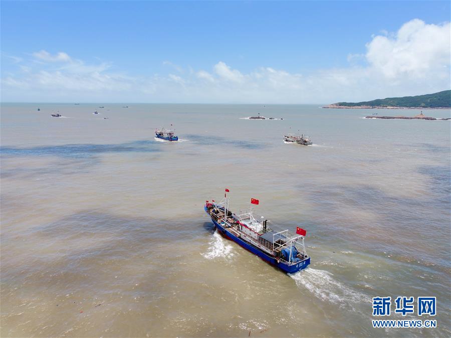 8月1日,在福建省霞浦縣三沙鎮(zhèn)海域,漁船開漁出海(無人機照片)。當(dāng)日,福建省海域的燈光圍(敷)網(wǎng)、張網(wǎng)、刺網(wǎng)、桁桿蝦拖和籠壺作業(yè)漁船結(jié)束為期3個月的休漁期,開漁出海。在福建省霞浦縣三沙鎮(zhèn),近兩百艘漁船起航駛離碼頭,開始海上捕魚作業(yè)。新華社記者姜克紅攝