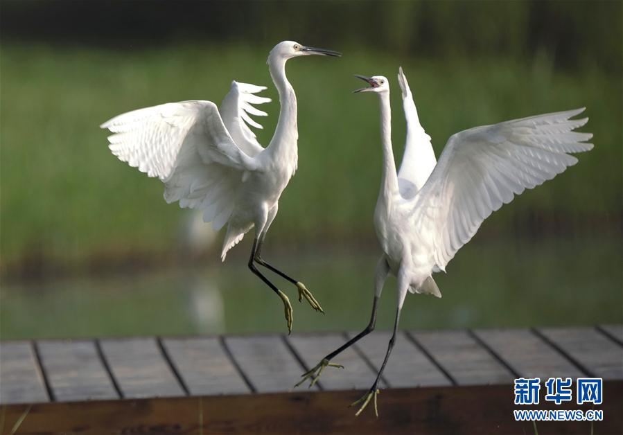8月3日,白鷺在唐山南湖公園飛舞。近日,大批鷺鳥飛抵河北唐山南湖公園,在此覓食、嬉戲。唐山南湖公園所在地曾是因采煤沉降形成的廢棄地,經綜合治理,成為一座水域面積11.5平方公里、綠地面積16平方公里的生態(tài)公園。新華社記者楊世堯攝