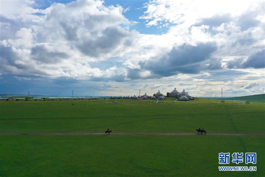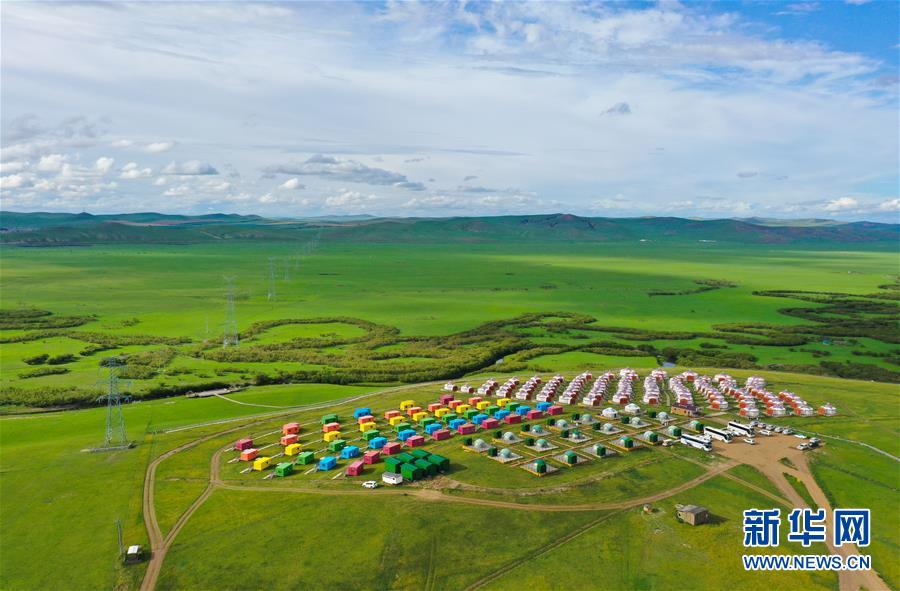 這是呼倫貝爾陳巴爾虎旗天下草原游牧部落一景(8月3日攝,無人機照片)。今年暑期,內蒙古呼倫貝爾通過暫行周末2.5天彈性休假工作制度,發(fā)放旅游、餐飲消費券,景區(qū)推出優(yōu)惠促銷活動等措施,提振當地旅游市場。新華社記者徐欽攝
