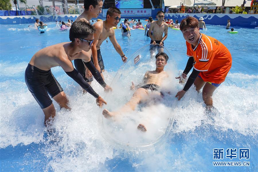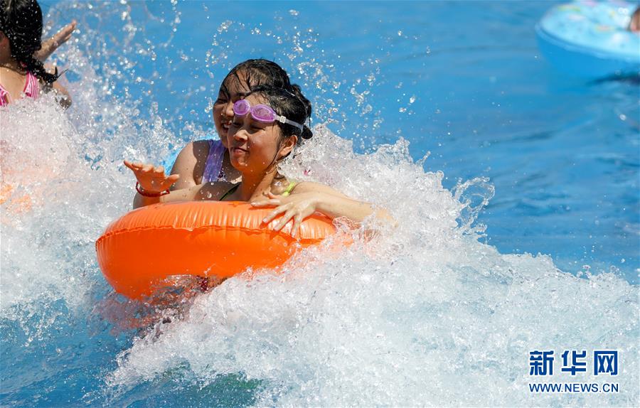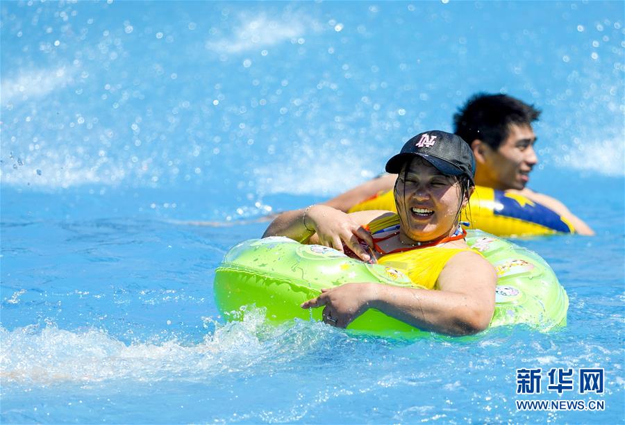 8月5日,重慶涪陵紅酒小鎮(zhèn)水上樂園內,市民在體驗水上游樂項目。當日,重慶市氣象臺再次發(fā)布“高溫橙色預警信號”,重慶大部分海拔400米以下地區(qū)日最高氣溫將升至37℃以上,局地可達40℃以上。許多重慶市民涌進當地的水上樂園和泳池,在水中享受夏季的清涼。新華社記者劉潺攝