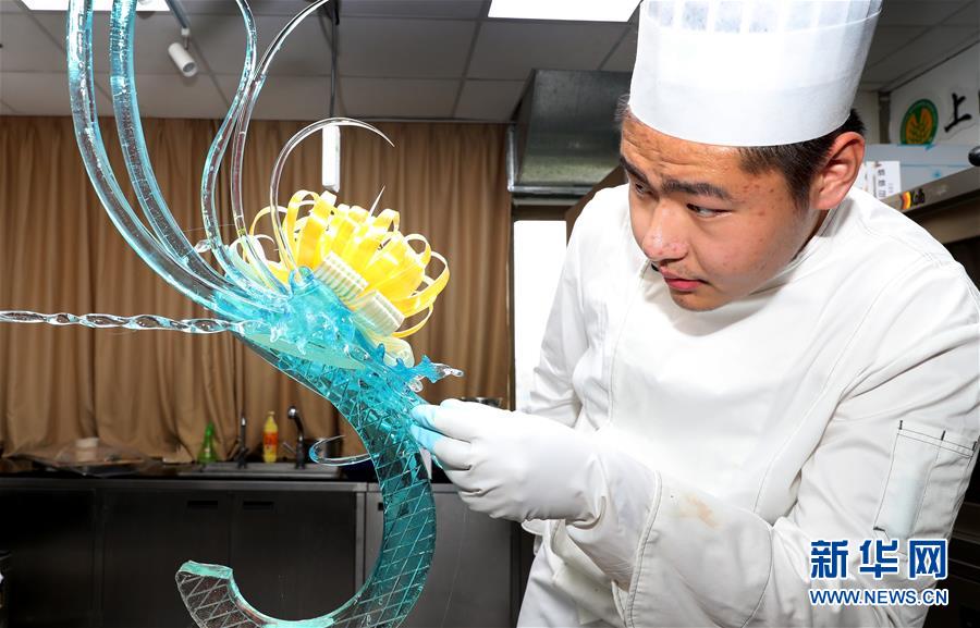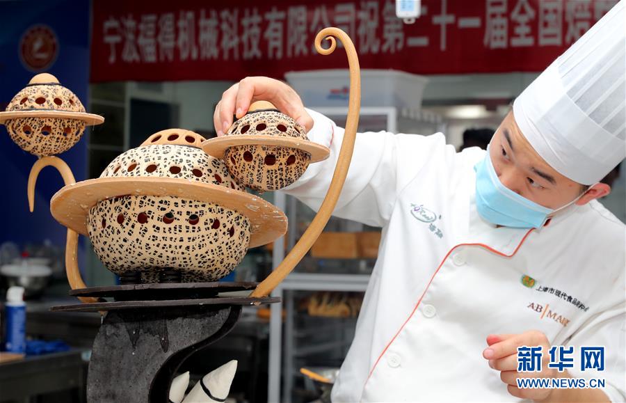 8月5日,糖藝比賽參賽選手在創(chuàng)作中。當日,第二十一屆全國焙烤職業(yè)技能競賽上海賽區(qū)選拔賽,在上海市現(xiàn)代食品職業(yè)技能培訓中心舉行,來自上海、江蘇、浙江等地的近60名焙烤行業(yè)技師,在藝術(shù)面包、傳統(tǒng)糕點、糖藝和藝術(shù)巧克力等項目中進行比拼,在充滿焙烤香氣的賽場上展現(xiàn)技藝。新華社記者方喆攝