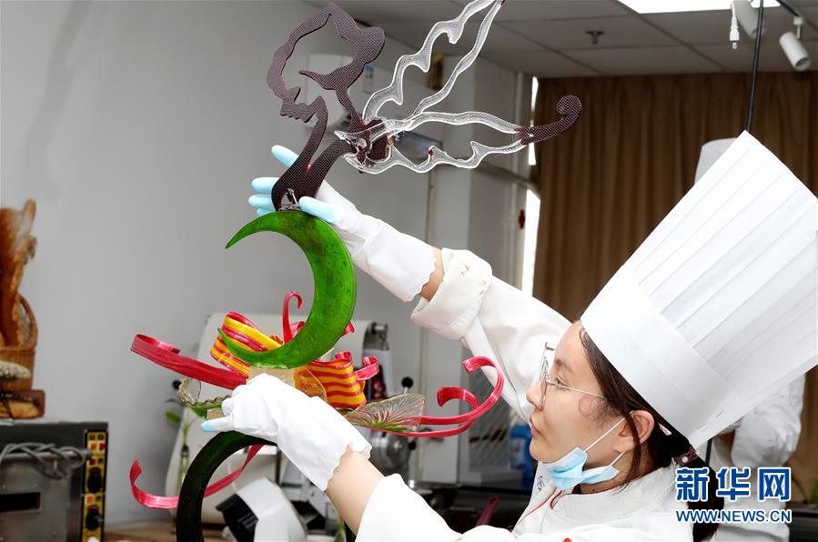 8月5日,參賽選手在創(chuàng)作航天主題的藝術(shù)面包。當日,第二十一屆全國焙烤職業(yè)技能競賽上海賽區(qū)選拔賽,在上海市現(xiàn)代食品職業(yè)技能培訓中心舉行,來自上海、江蘇、浙江等地的近60名焙烤行業(yè)技師,在藝術(shù)面包、傳統(tǒng)糕點、糖藝和藝術(shù)巧克力等項目中進行比拼,在充滿焙烤香氣的賽場上展現(xiàn)技藝。新華社記者方喆攝