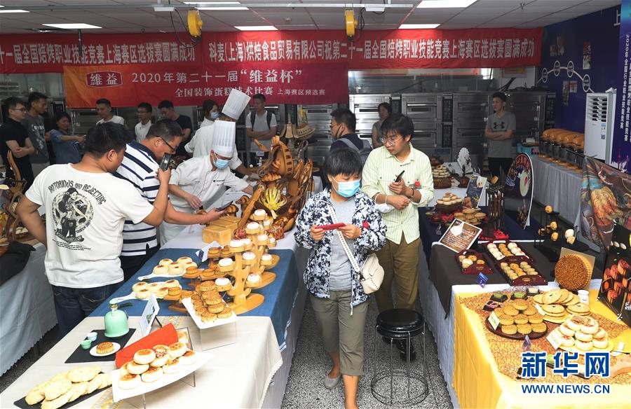 8月5日,觀眾在展示區(qū)觀看參賽選手的作品。當日,第二十一屆全國焙烤職業(yè)技能競賽上海賽區(qū)選拔賽,在上海市現(xiàn)代食品職業(yè)技能培訓中心舉行,來自上海、江蘇、浙江等地的近60名焙烤行業(yè)技師,在藝術(shù)面包、傳統(tǒng)糕點、糖藝和藝術(shù)巧克力等項目中進行比拼,在充滿焙烤香氣的賽場上展現(xiàn)技藝。新華社記者方喆攝
