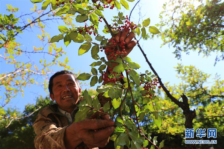 7月17日,舟曲縣立節(jié)鎮(zhèn)拉溝村的村民在摘花椒。新華社記者杜哲宇攝