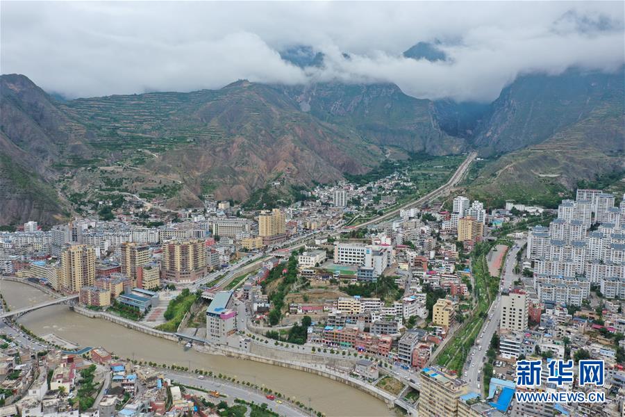 這是7月14日拍攝的舟曲縣老縣城(無人機照片)。新華社記者杜哲宇攝