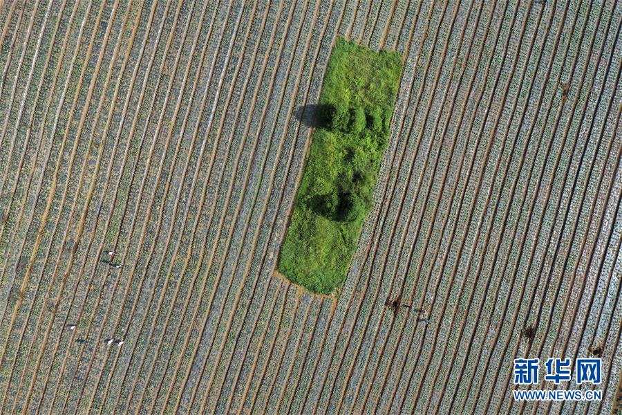 這是威寧縣草海鎮(zhèn)中海社區(qū)蔬菜基地(8月6日攝,無人機(jī)照片)。新華社記者金良快攝