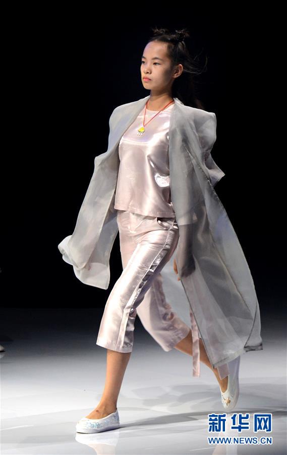 8月7日,小模特在T臺上展示童裝。當日,2020中國(河南)國際大學(xué)生時裝周舉行童裝設(shè)計專場展示。8月5日至7日,2020中國(河南)國際大學(xué)生時裝周在河南省新密市豫發(fā)密蘭小鎮(zhèn)舉行。新華社發(fā)(海雨涵攝)